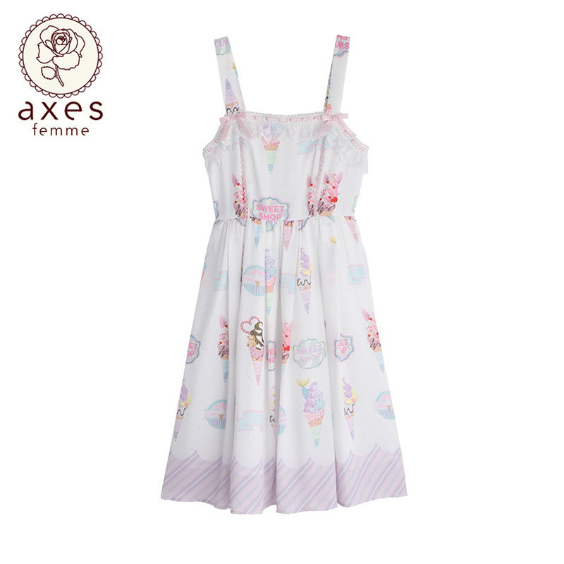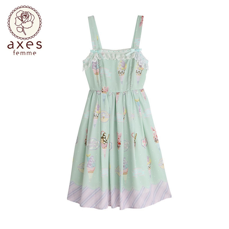 连衣裙 axesfemme cream系列蕾丝拼接无袖 Ice TS341X27S kawaii