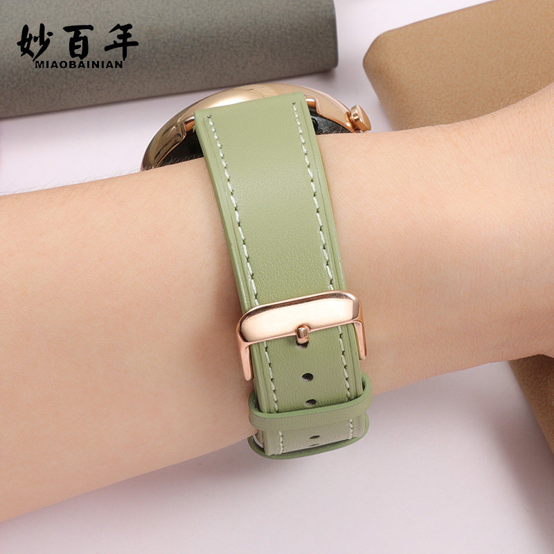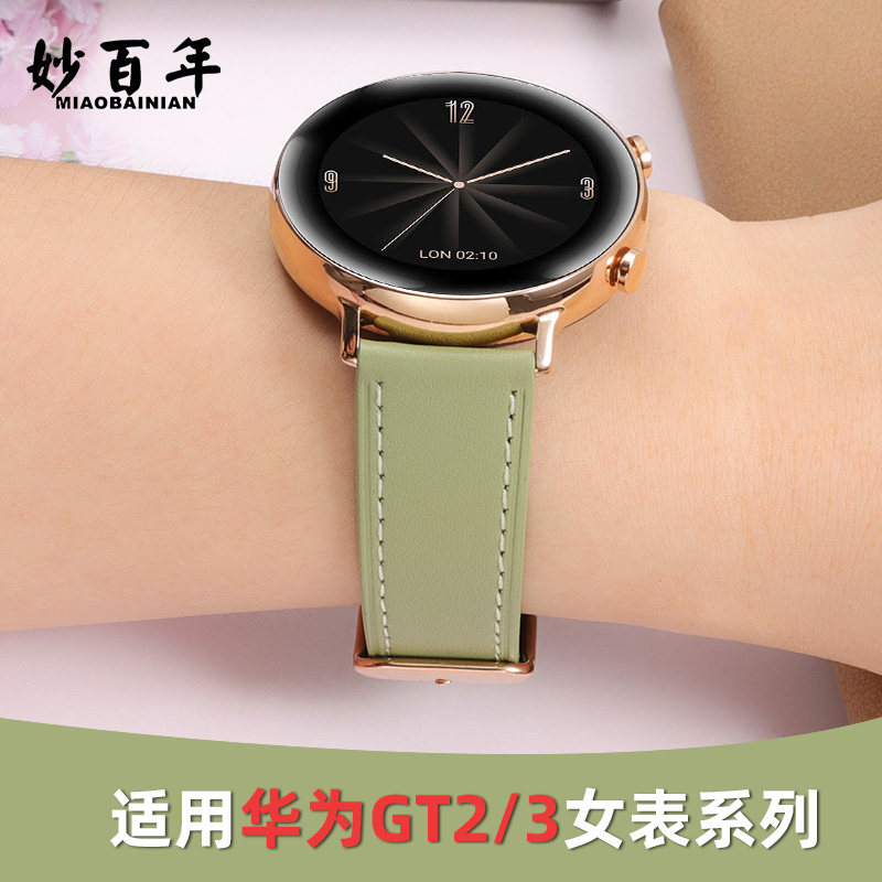 Runner配件手链42mm手表 Watch3pro新款 适用华为GT2 5表带女GT3pro保时捷运动GT4真皮ECG果绿色荣耀Magic2原款