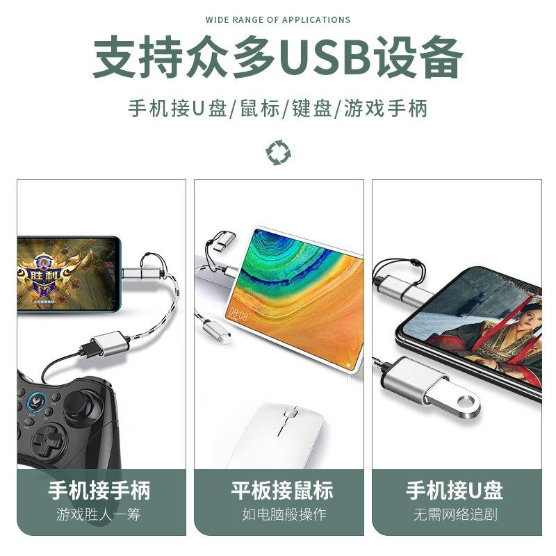 OTG转接线typec转USB转换器手机充电传输数据线二合一转接头