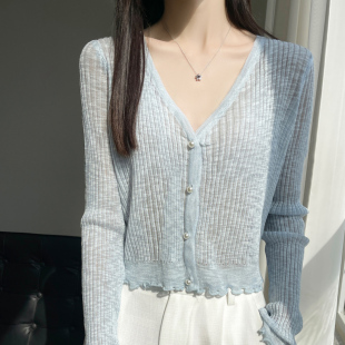 女V领短款 夏季 开衫 冰丝防晒薄款 小个子披肩上衣宽松针织小外套 款
