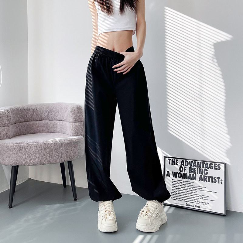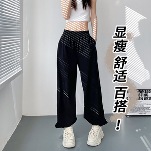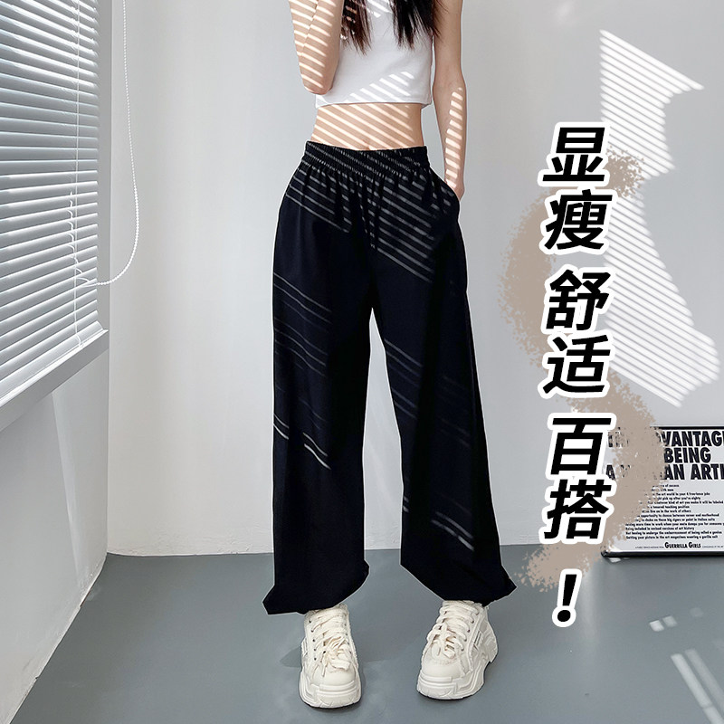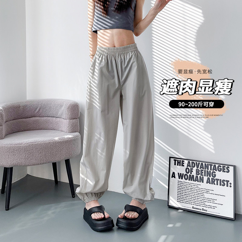 高腰直筒束脚休闲裤 冰丝防晒运动裤 胖mm宽松显瘦阔腿裤 大码 女夏季