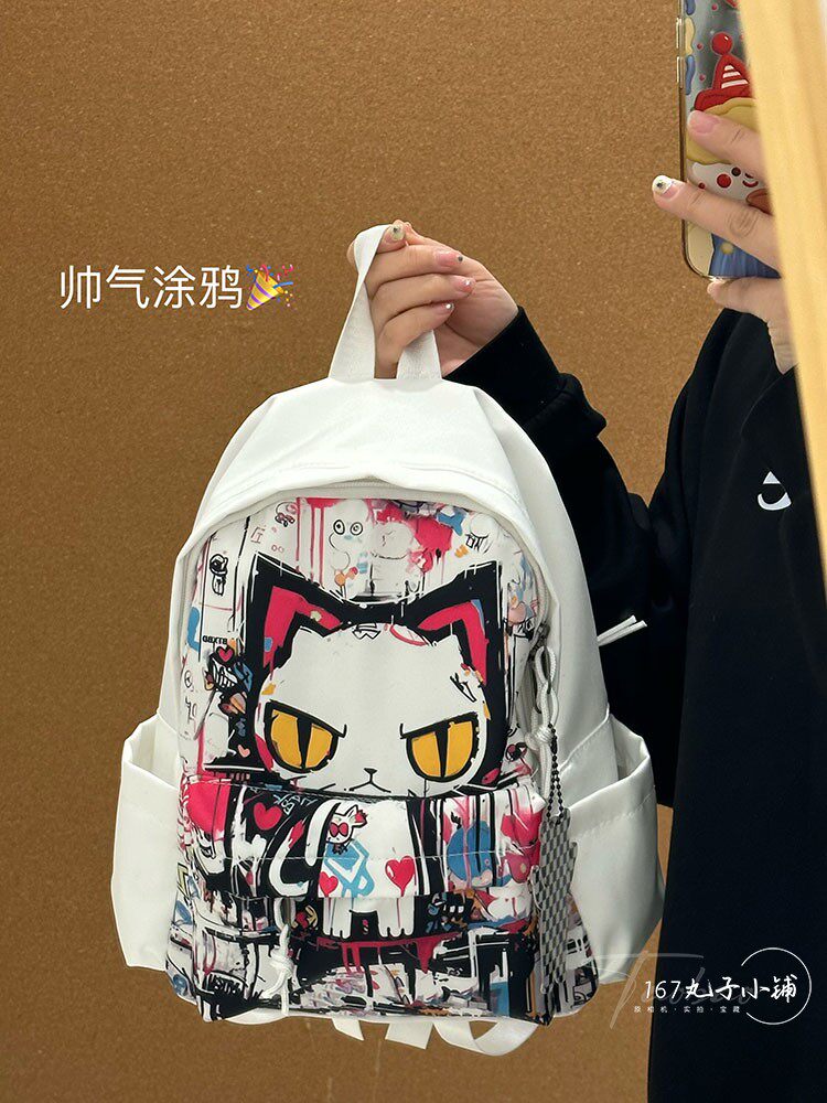 书包初中女生小众设计感稀奇古怪 双肩包高颜值高中生涂鸦小背包