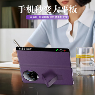 适用新款 全包真皮腕带支架保护套折叠屏x6防摔保护壳mtx3头层牛皮男女轻薄外壳皮套 华为matex5手机壳X5典藏版
