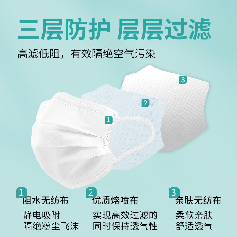 稳健医疗低呼吸阻力透气轻薄一次性医用白色口罩独立包装 空气口罩