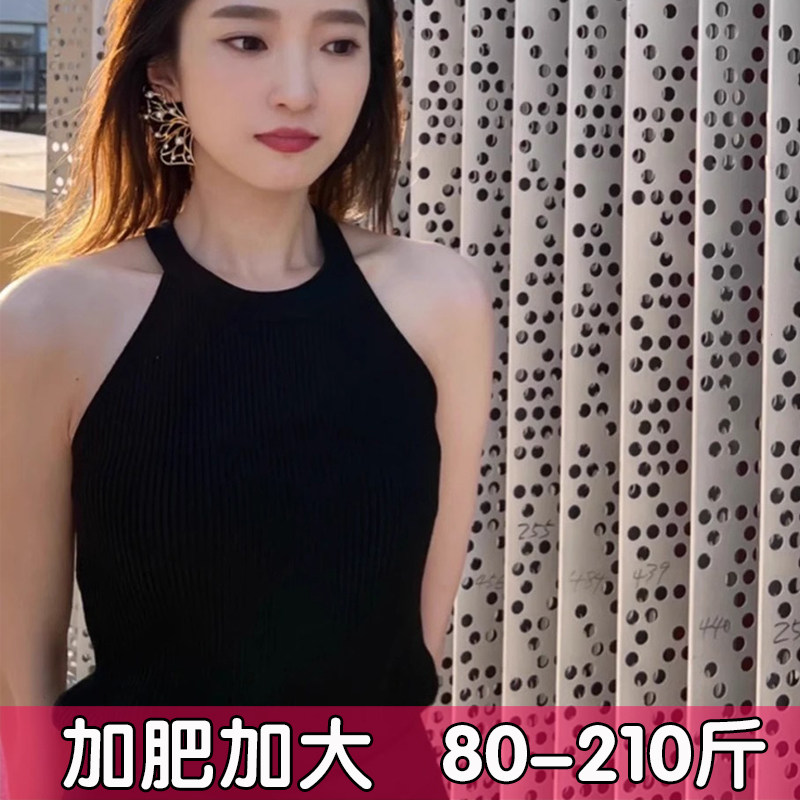 冰丝挂脖吊带背心女夏大码 上衣胖mm 外穿内搭打底针织宽松遮肚无袖
