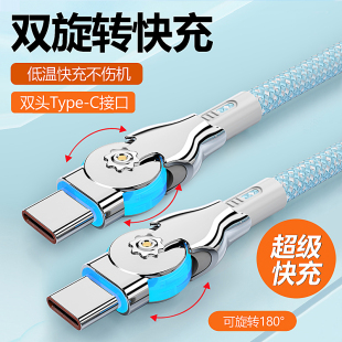 双头type c双弯头可旋转PD65W超级快充数据线适用于苹果15公对公ipad转pro华为小米笔记本车载ctoc充电线