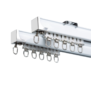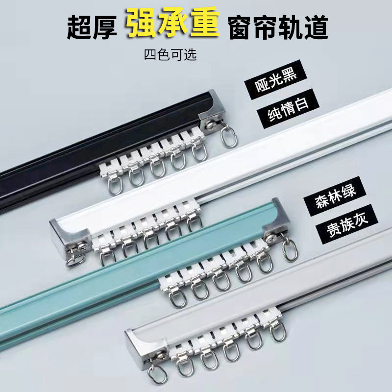 铝合金窗帘轨道滑轨双轨静音一体滑轮轨道杆侧装 滑道加厚顶窗帘杆