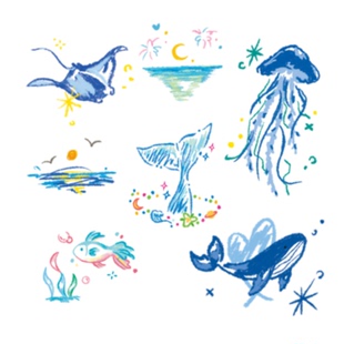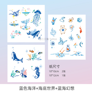 三川集 蓝色海洋趣味鲸鱼彩色纹身贴贴手臂脸花臂防水持久女锁骨