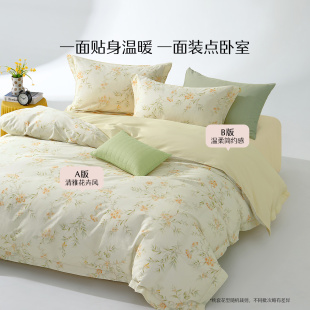 水星家纺全棉四件套100纯棉被套被罩床笠单双人小清新花卉床品