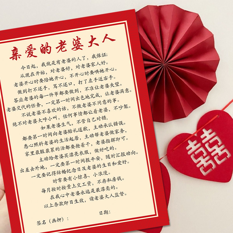 爱 宣言誓言书结婚承诺书新郎爱情保证书誓言卡婚礼誓词宣誓卡
