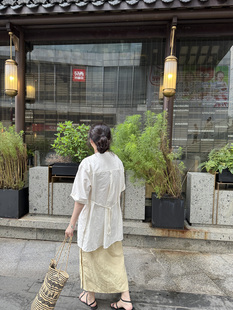 衬衫 中长款 上衣 小众廓形后背系带套头圆领五分袖 DecemberRush