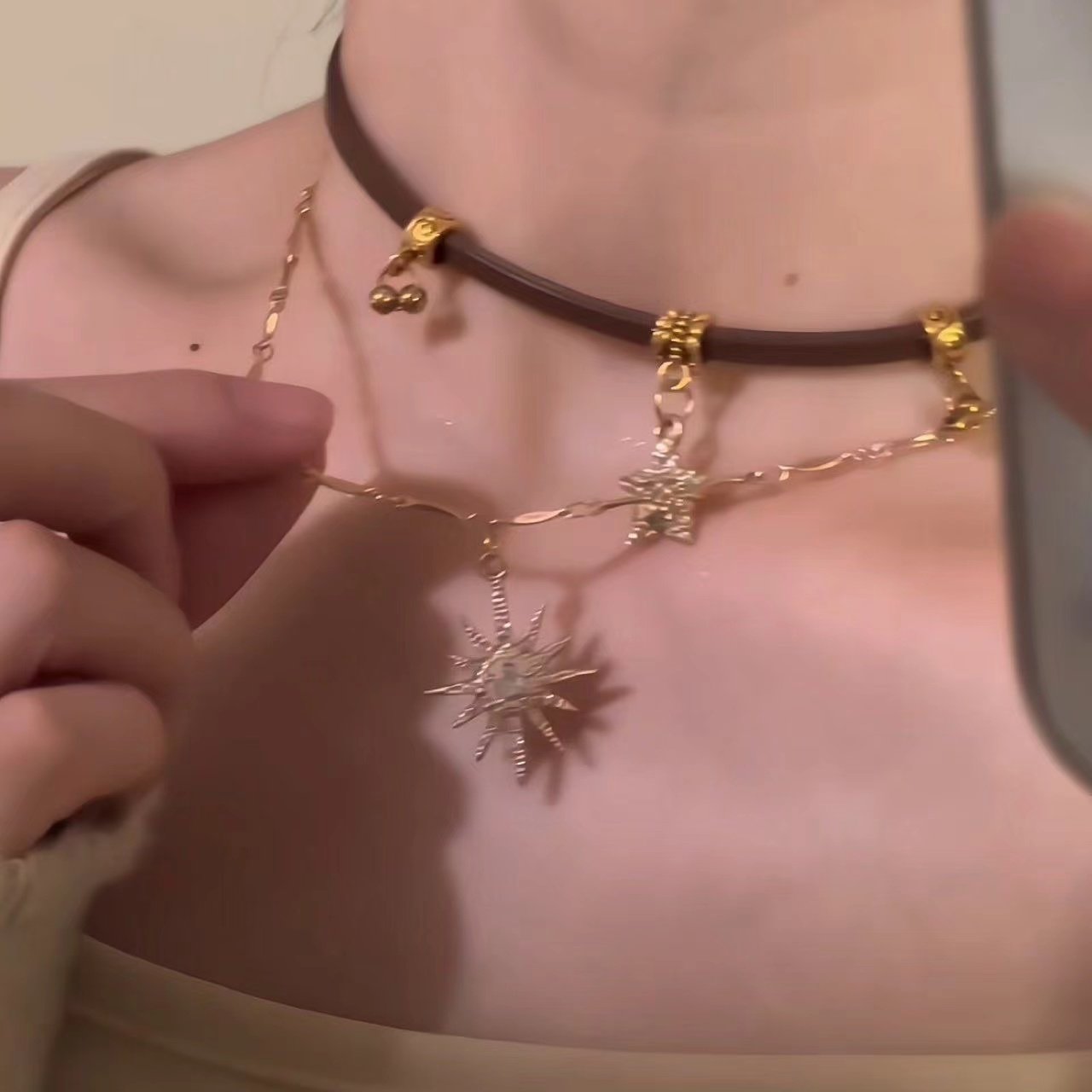甜酷y2k个性 多层叠戴水晶串珠十字架项链女小众哥特辣妹锁骨链潮