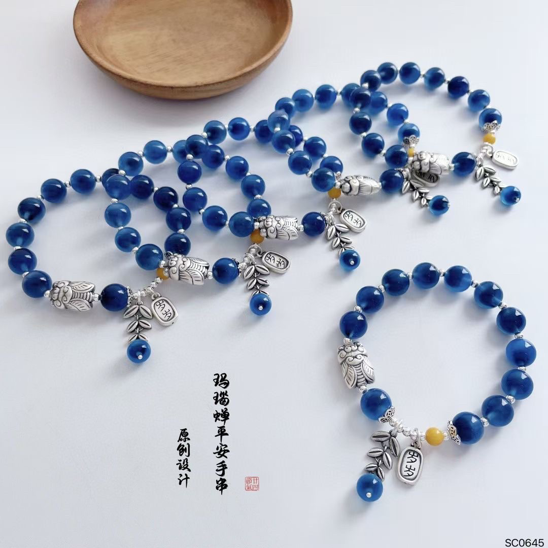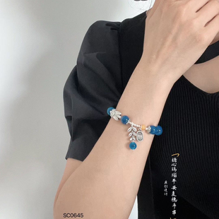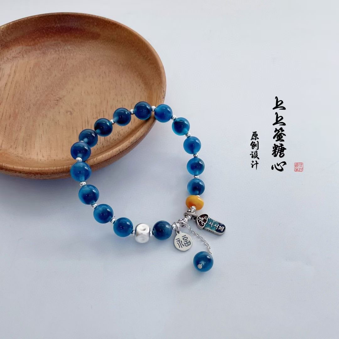 天然糖心玛瑙一名惊人手链足银999配饰中式 单圈手饰送学生送女友