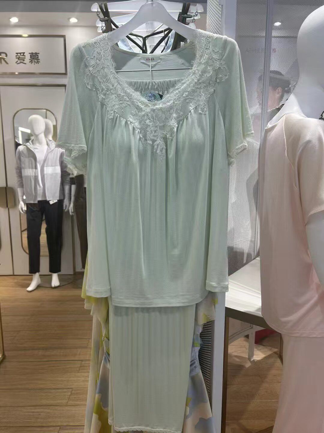 爱慕家居24SS舒适简约睡美人短袖 睡衣AM469671防凸点 带杯分身套装