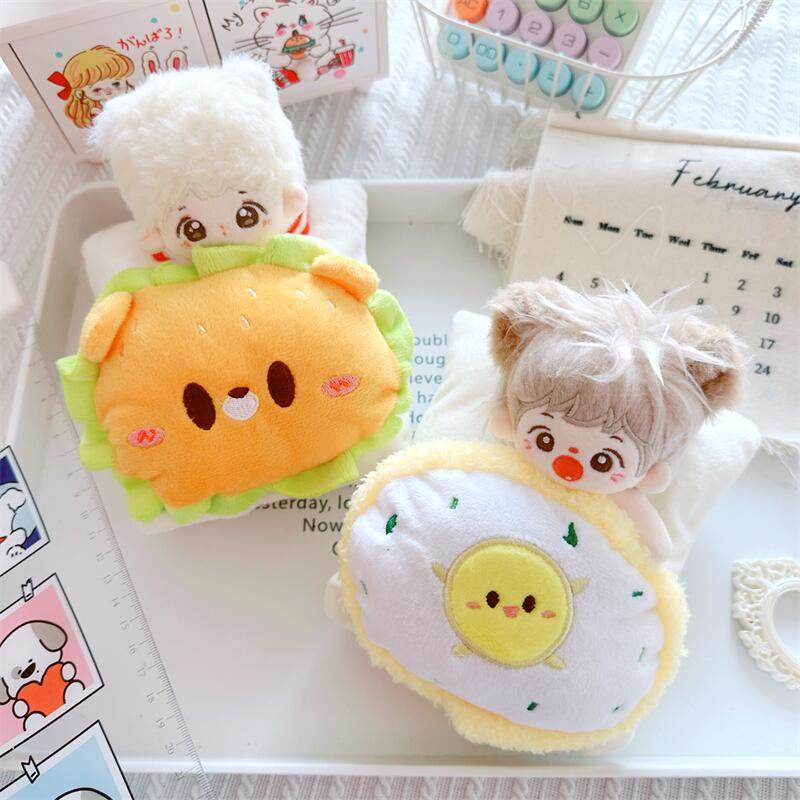 10cm棉花娃娃床品15cm明星玩偶娃娃馋汉堡包鸡蛋床品被子床垫枕头