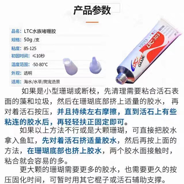 LTC水族专用啫喱胶水粘珊瑚断肢胶固定断枝活石胶沉木水草造景胶