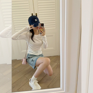打底t恤女早秋纯色百搭上衣 弹力螺纹棉修身 元 熙yuanxi半高领长袖