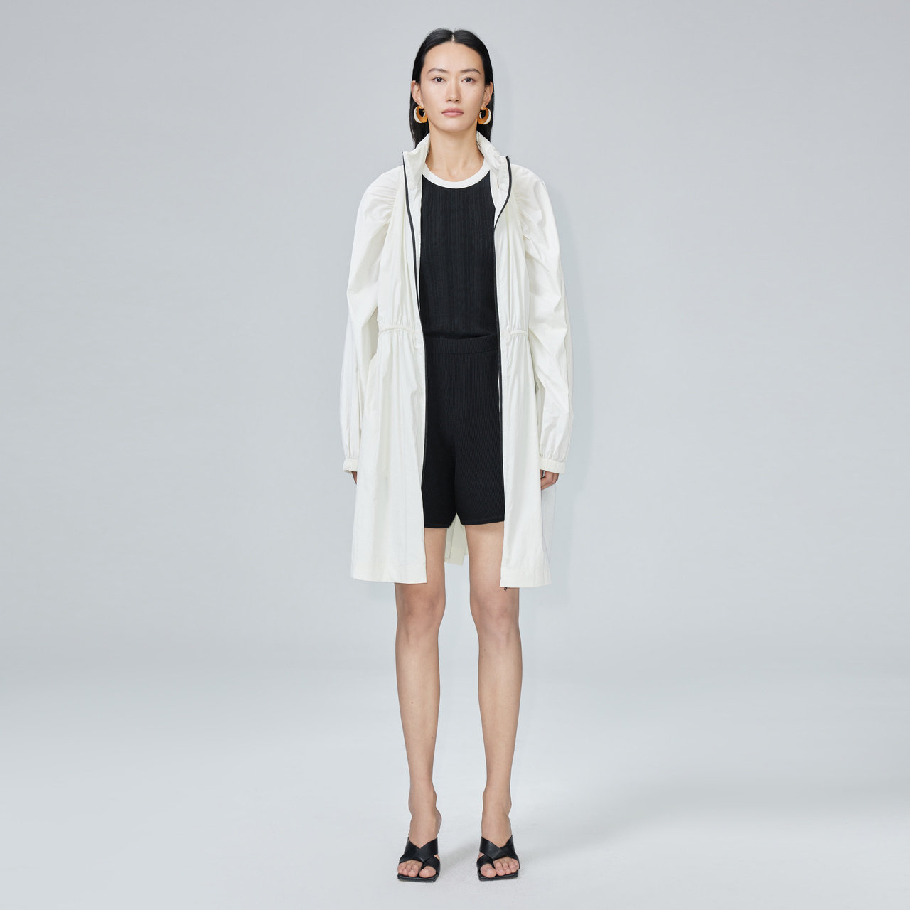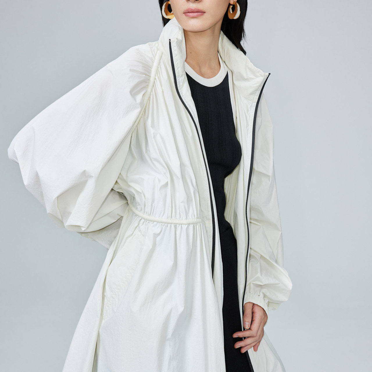 IMM尹默女装 风衣外套轻薄便携抽绳防晒衣夏 连帽抽绳中长款