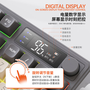 自由狼M96无线蓝牙双模俄语键盘PBT球帽显示屏俄罗斯游戏俄文键盘