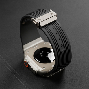 不锈钢金属钛金色Ultra氟橡硅胶S9表带适用iWatch8苹果手表壳49mm