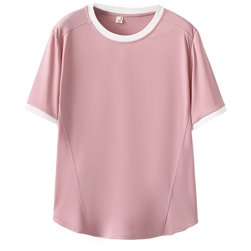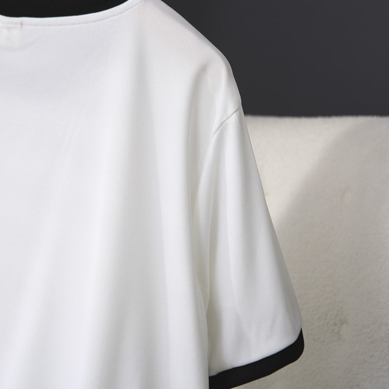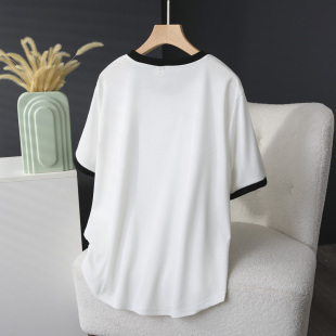 胖mm200斤拼色圆领立体剪裁短袖 新款 上衣 2024年夏季 显瘦t恤女大码