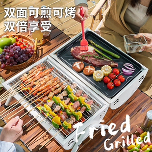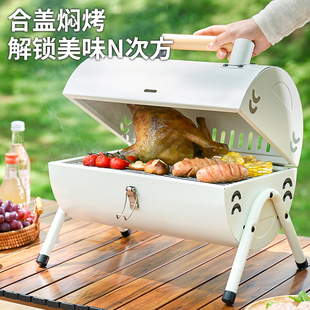 捷安玺烧烤炉户外便携式 折叠圆筒双面烤肉烤串架子网红木炭碳烤炉