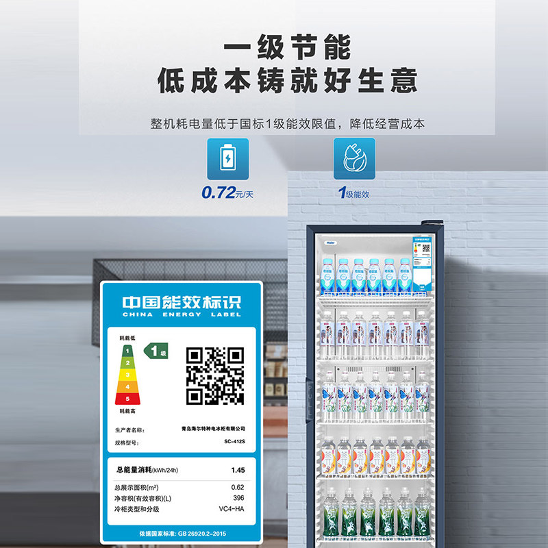 海尔339 超市冰柜一级能效 412展示柜风冷无霜饮料冷藏柜商用立式