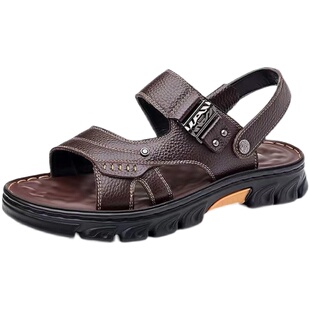 爸爸皮凉拖鞋 啄木鸟凉鞋 透气休闲百搭沙滩鞋 新款 子 男真皮防滑夏季