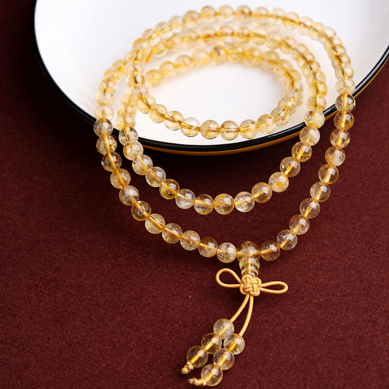 天然黄塔晶水晶手串108颗念珠黄色水晶手链佛珠多圈男女款 首饰