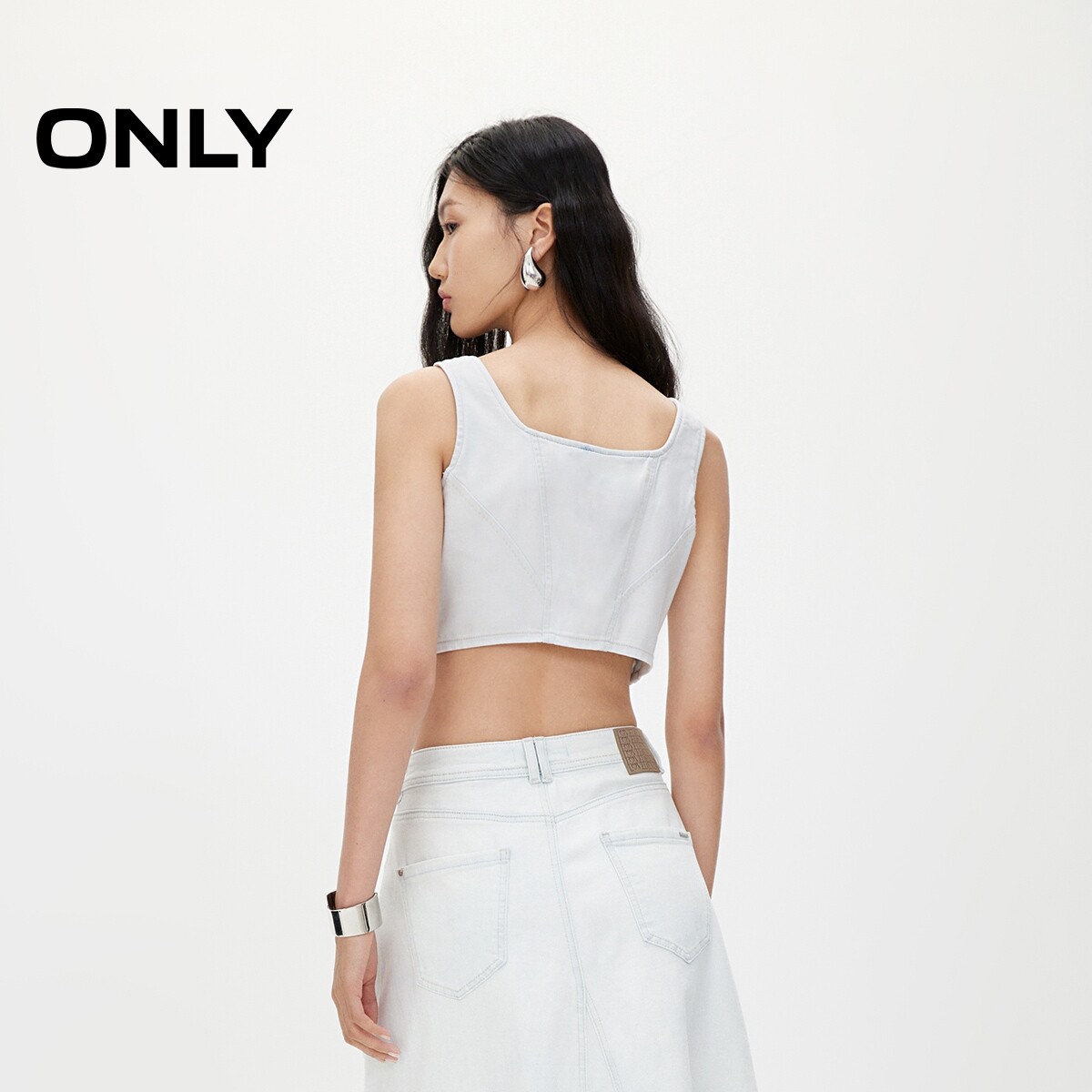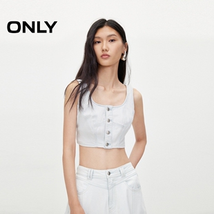 莱卡休闲时尚 春夏新款 短款 无袖 女 牛仔雪纺衫 ONLY奥莱