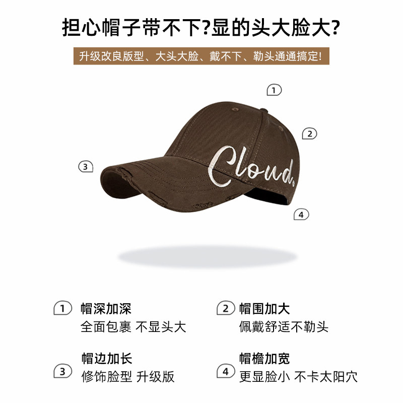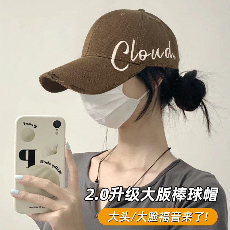 大头围宽沿鸭舌帽加深加大夏季 破洞帽子潮 显脸小棒球帽女2026新款