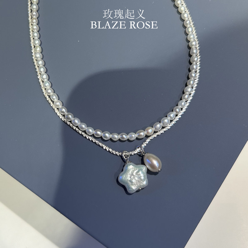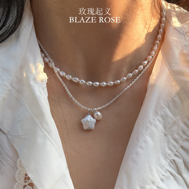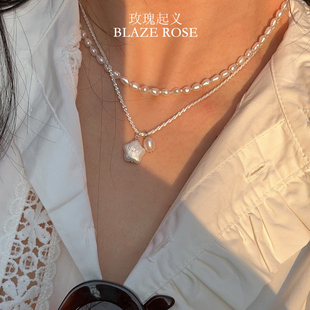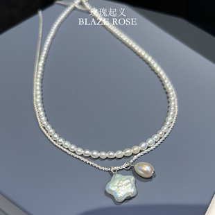 原创天然淡水珍珠项链米珠强光精致轻奢通勤碎银子纯银锁骨链叠戴