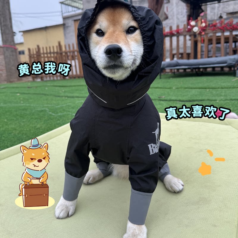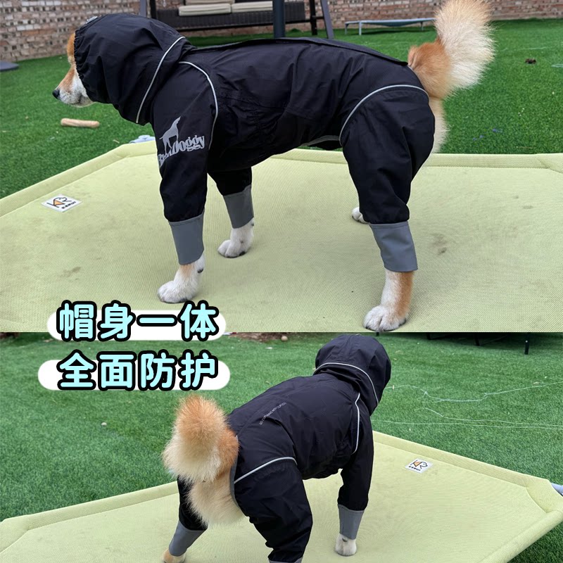 五魁首狗狗雨衣春装 户外四脚防水边牧全包冲锋衣中大型犬宠物衣服