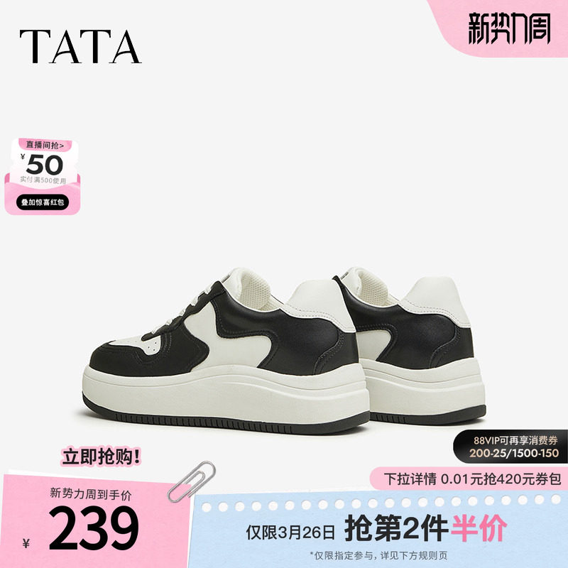 熊猫鞋 Tata他她拼接撞色厚底板鞋 通勤小白鞋 情侣鞋 新7CR21CM4 女鞋