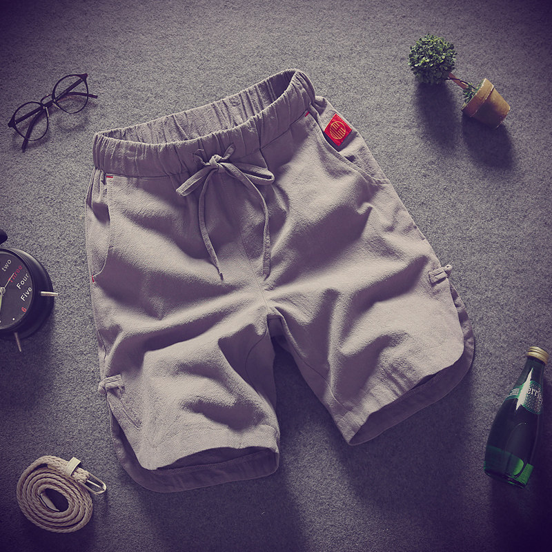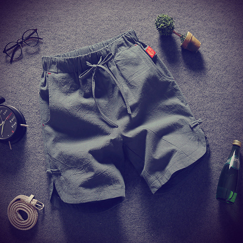 胖子休闲五分裤 夏季 薄款 亚麻短裤 衩棉麻裤 潮牌大码 沙滩大裤 子 男士