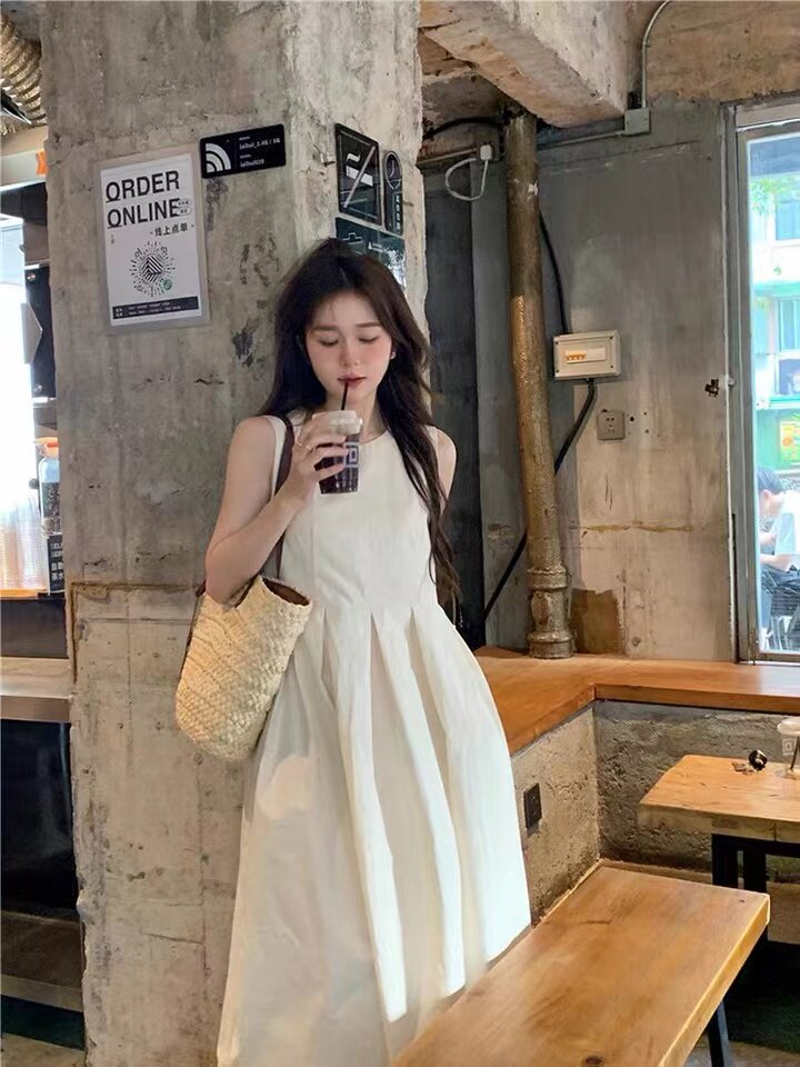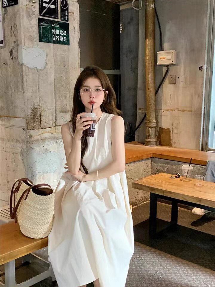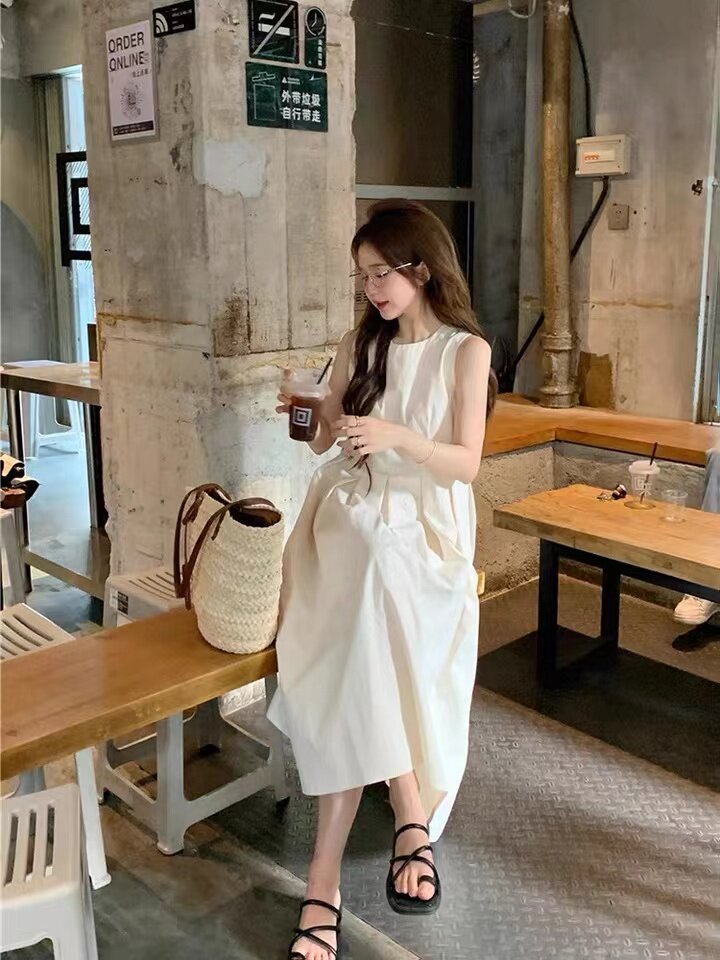 温柔风无袖 背心裙有拉链时尚 连衣裙2024新款 宽松中长款 潮 夏季 法式
