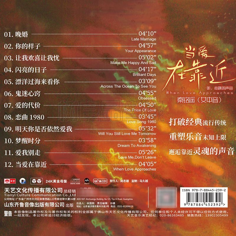天艺唱片秦铭遥当爱在靠近黄金母盘1:1直刻品质女中音HIFI音乐CD