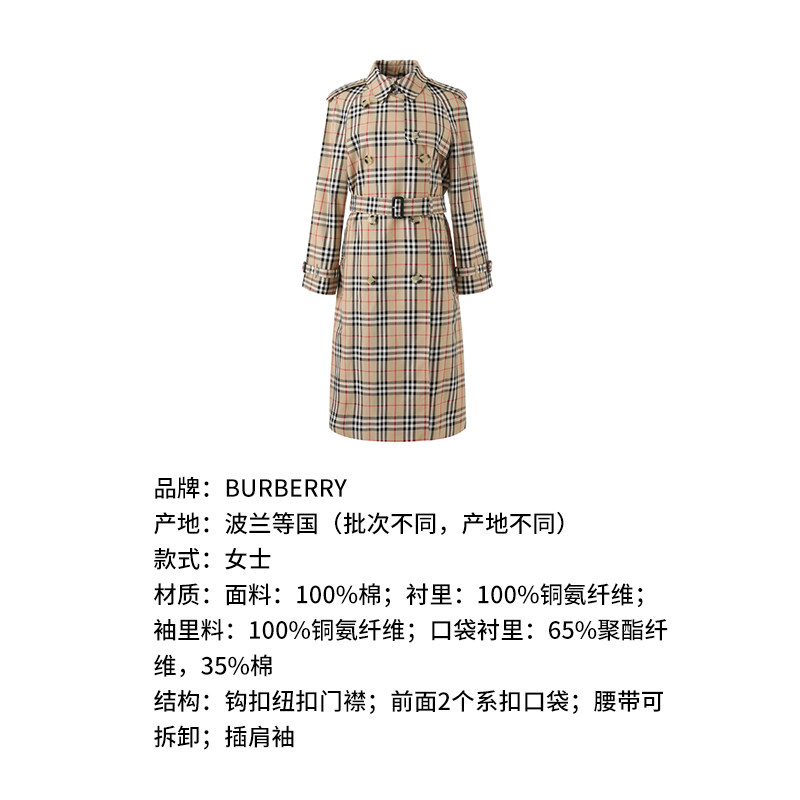 BURBERRY博柏利 风衣外套格子风衣8072716 女士格纹美拉德风宽松版