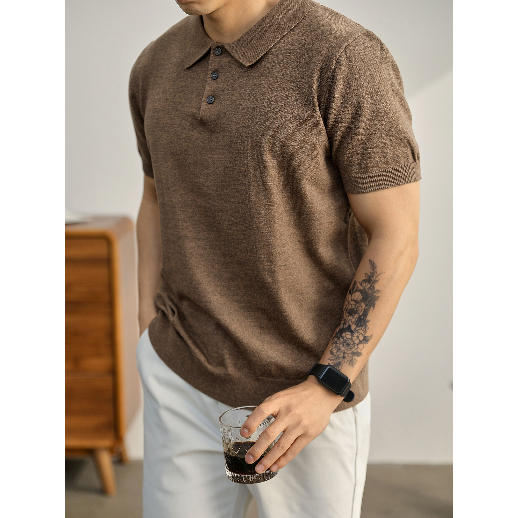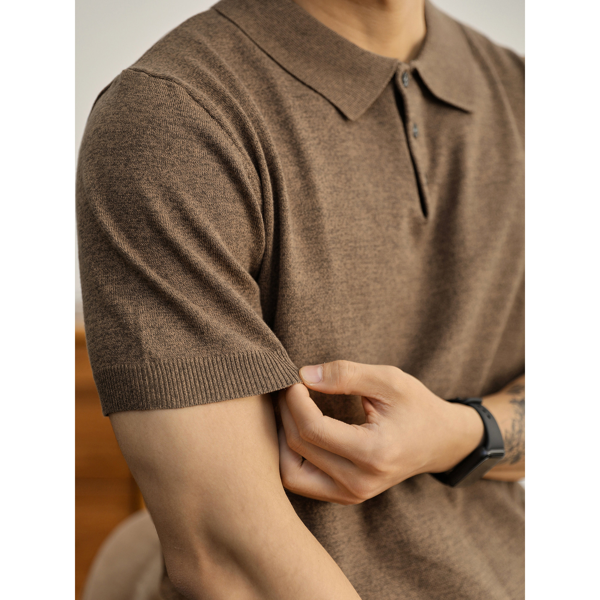 polo衫 LUUD 短袖 男夏日百搭修身 潮奢复古感彩咖色针织翻领保罗衫