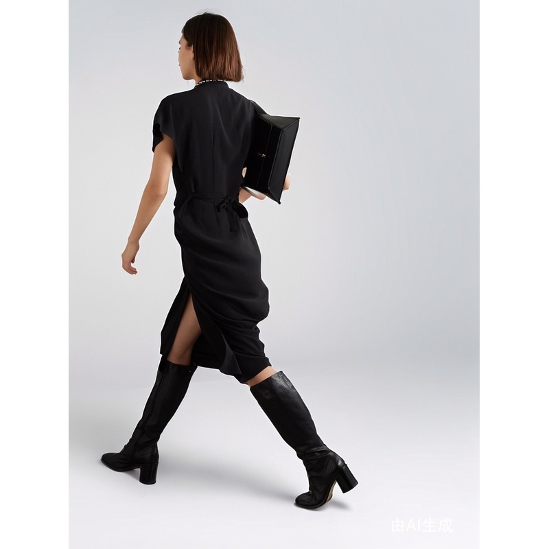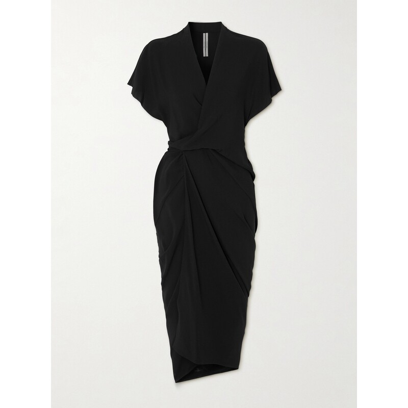 夏季 Owens Rick 女凉感缩褶围裹效果绉纱中长连衣裙 折扣再降