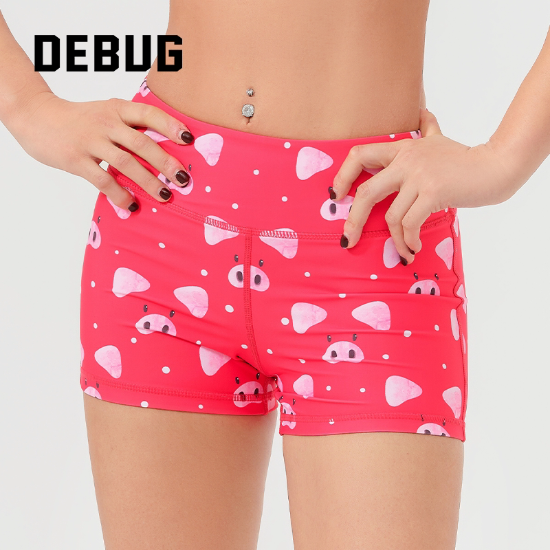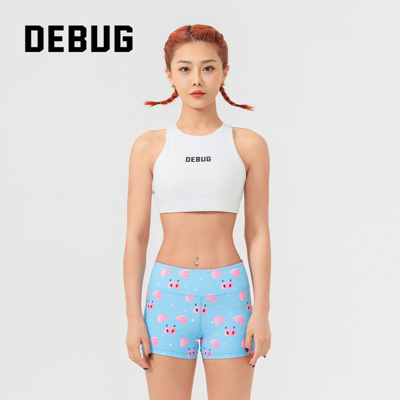 红色蓝色猪鼻女子提臀束腰弹力排汗短裤 52赫兹 甜甜圈 DEBUG新款