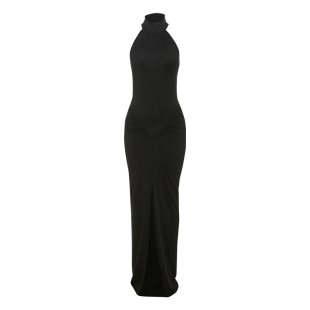 黑美人气质优雅设计感贝壳褶皱沙漏型挂脖吊带连衣裙女 Sisjuly