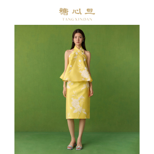 明黄挂脖上衣 糖心旦TANGXINDAN2025春夏夏花 徐梦洁同款