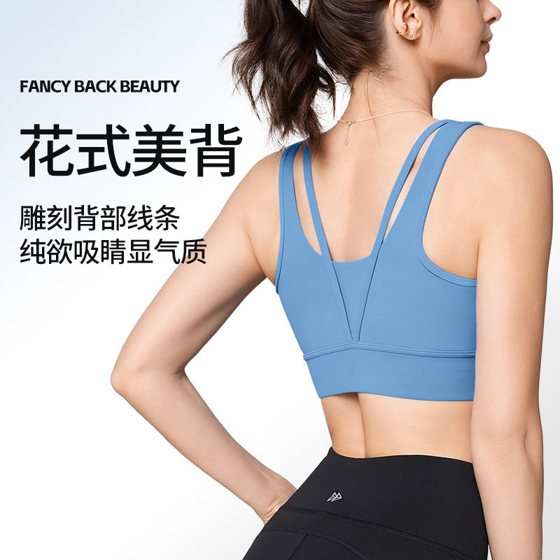 健身女孩带胸垫瑜伽背心外穿防震运动内衣工字美背普拉提训练文胸