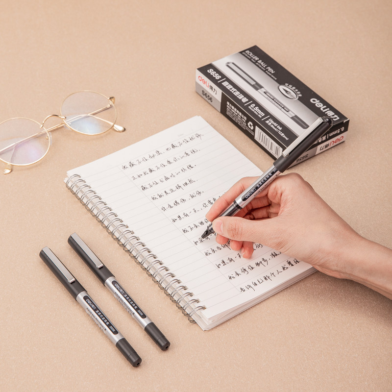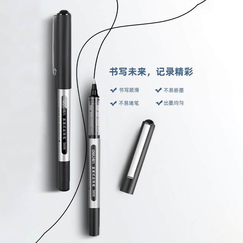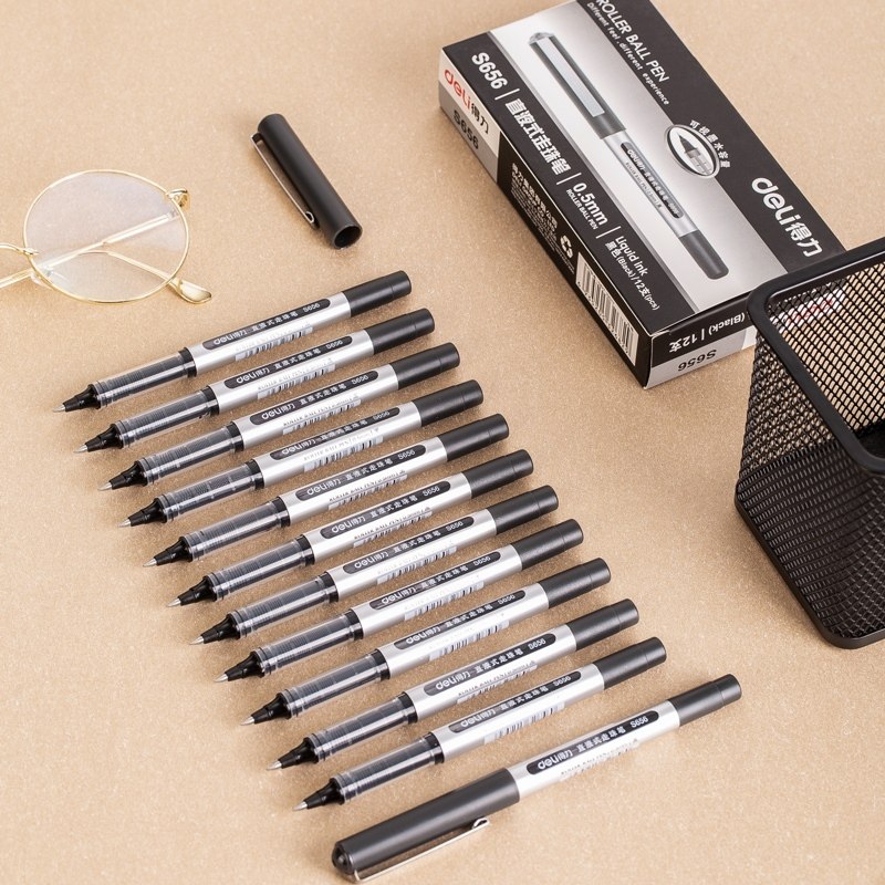 得力直液式 走珠笔高颜值子弹头学生用S656水笔签字商务办公文具中性笔ins冷淡风0.5黑色蓝红大容量拔帽碳素笔