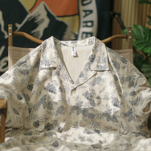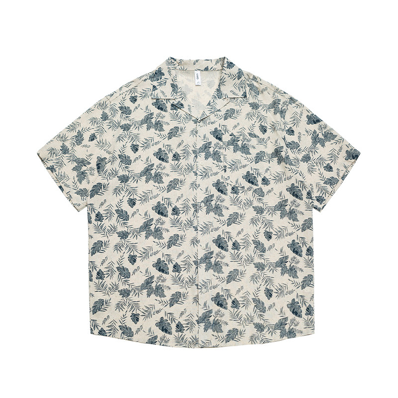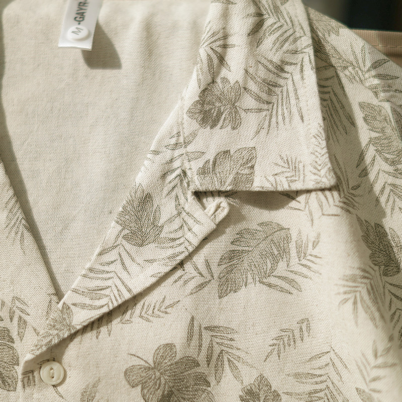 树羽 男休闲宽松五分袖 夏季 衬衫 麻衬衣 日系夏威夷风古巴领短袖