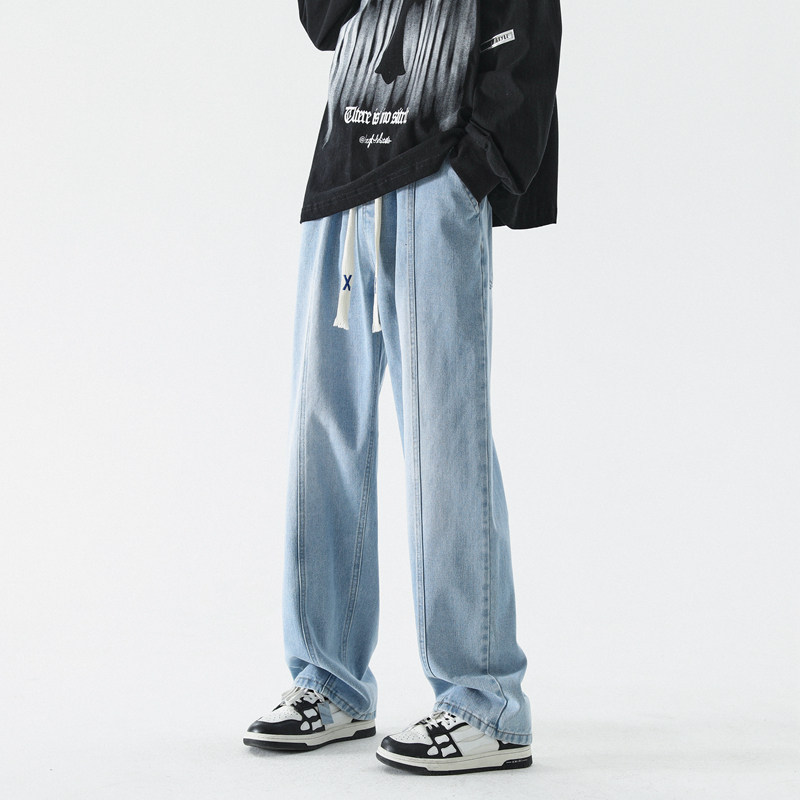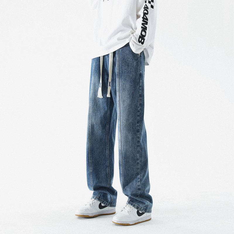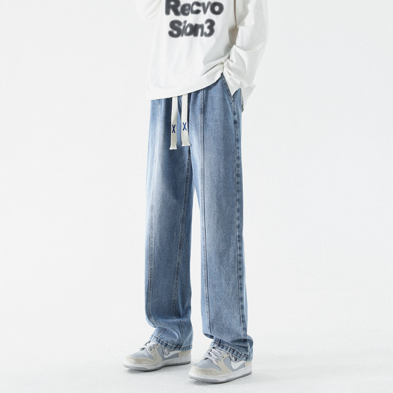 显瘦百搭休闲长裤 pusumede理想裤 女宽松直筒阔腿裤 高腰牛仔裤 型
