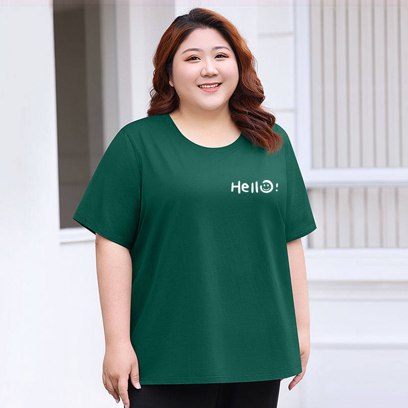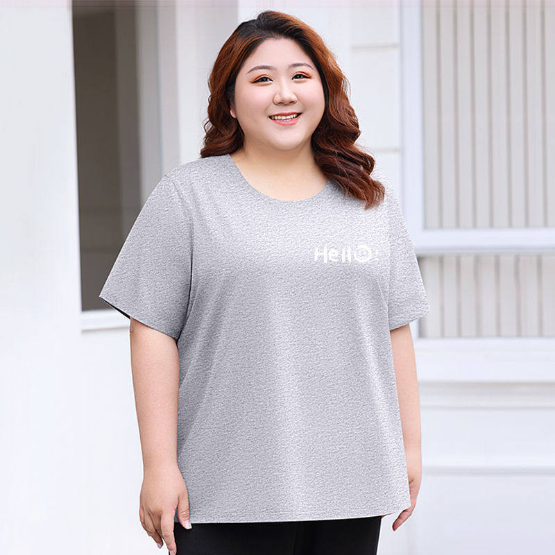 女装 t恤加肥胖妈妈时尚 夏季 圆领短袖 纯色简约显瘦上衣 新款 特大码