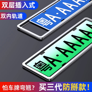 汽车牌照框车牌架新交规车牌套不锈钢通用固定车牌边框托盘加厚
