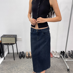 半身裙女胖妹妹高腰mm显瘦后开叉直筒长裙 黑色毛呢款 巨好看 大码